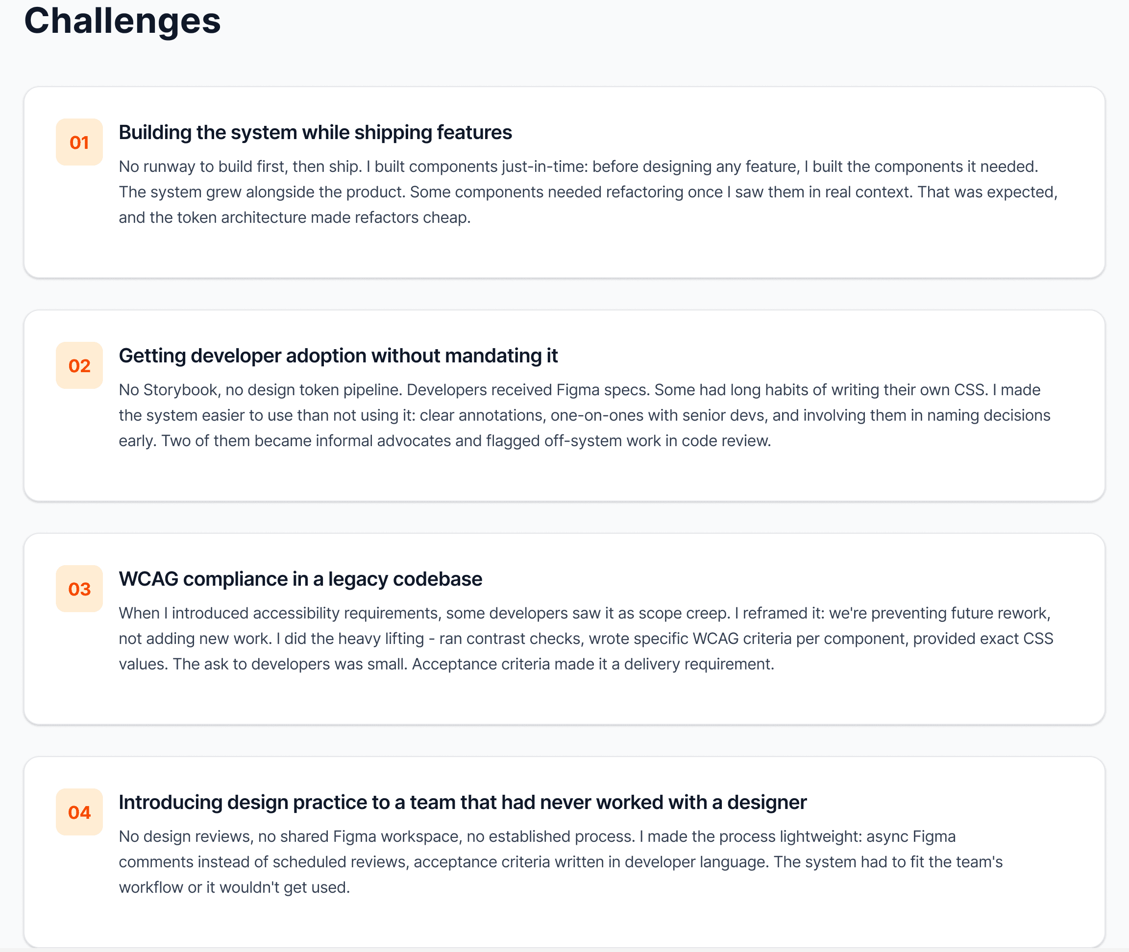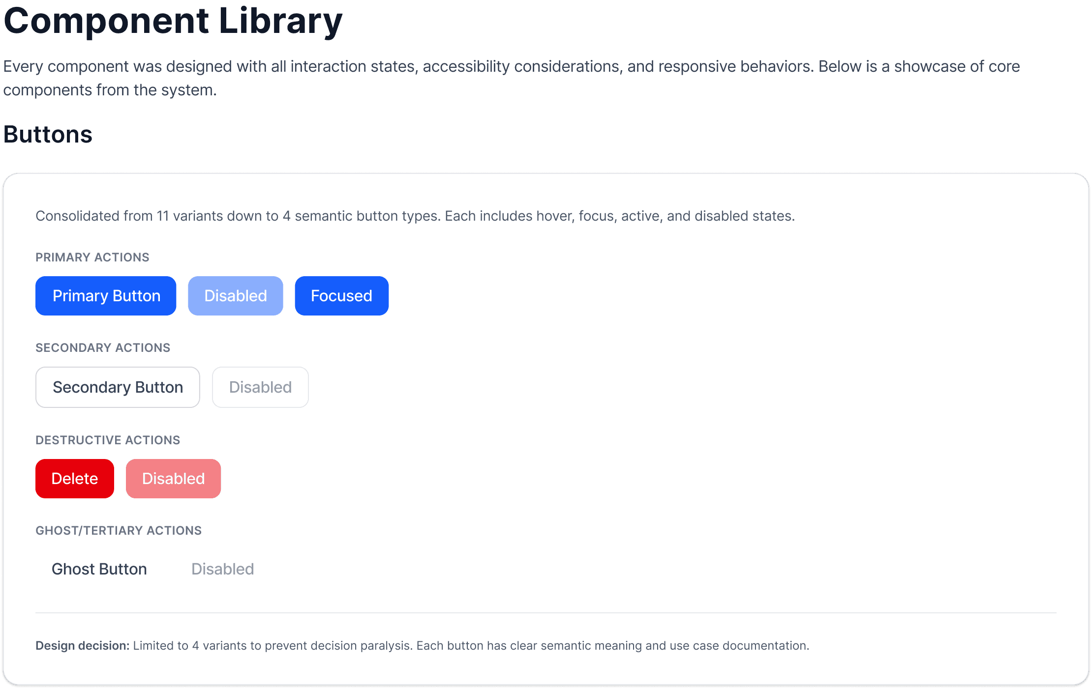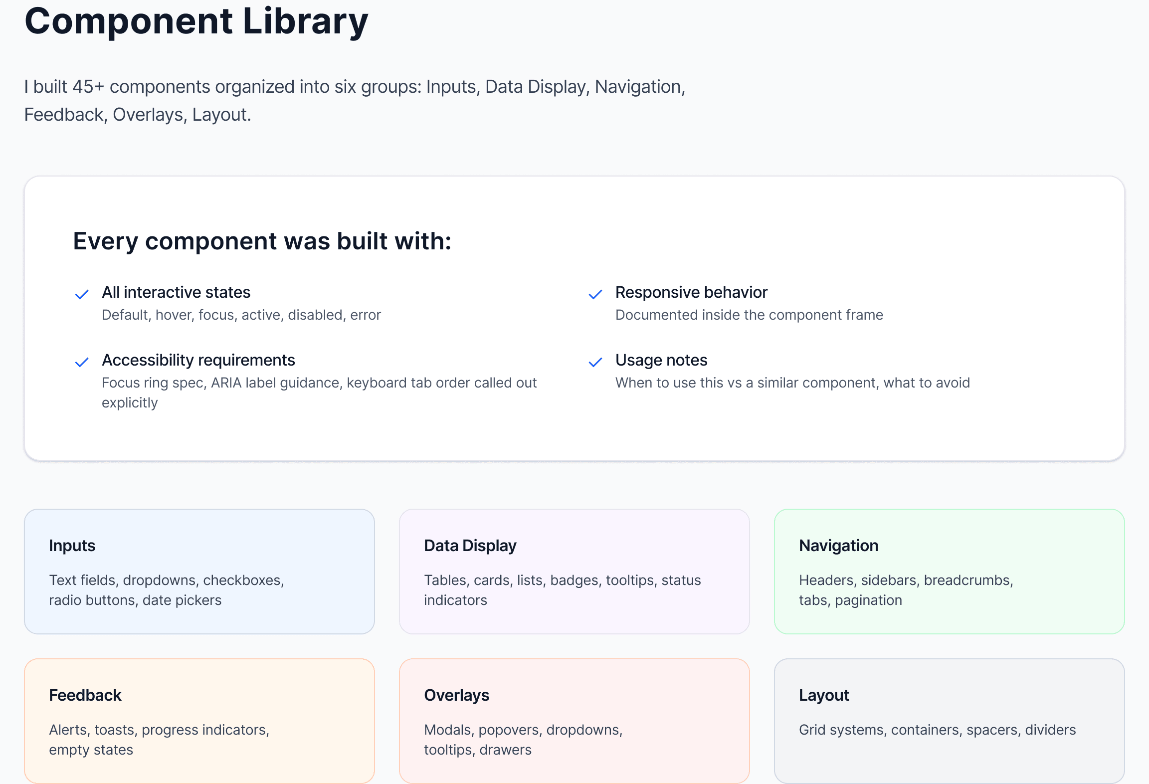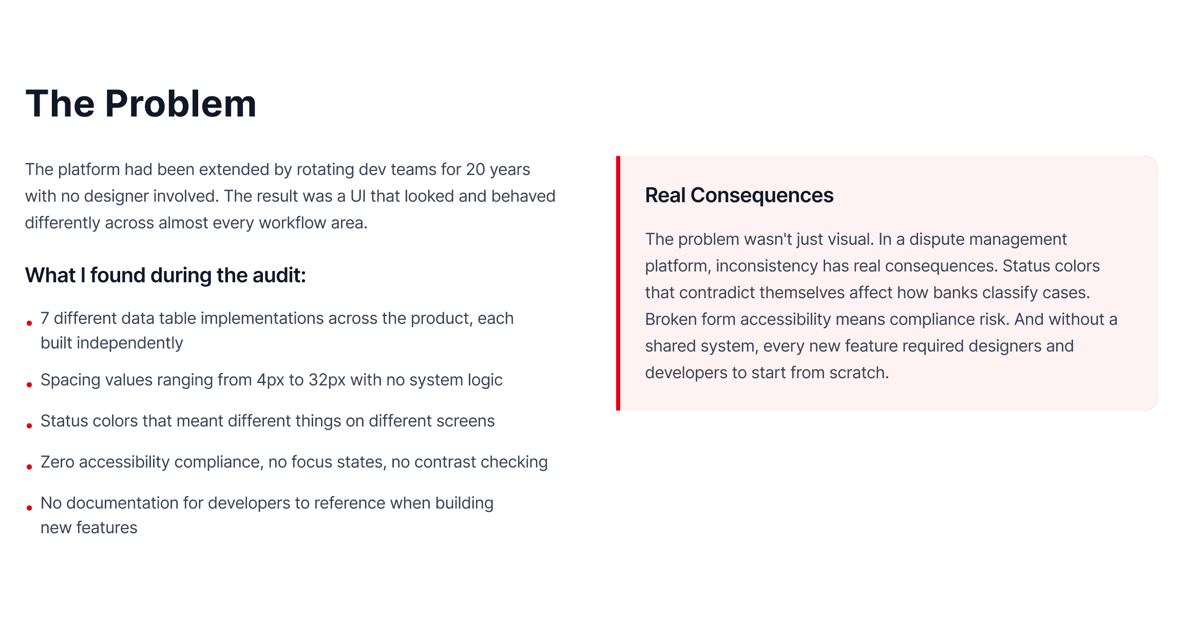 Building a design system from scratch for an enterprise fintech platform with no shared components, no tokens, and no documentation.